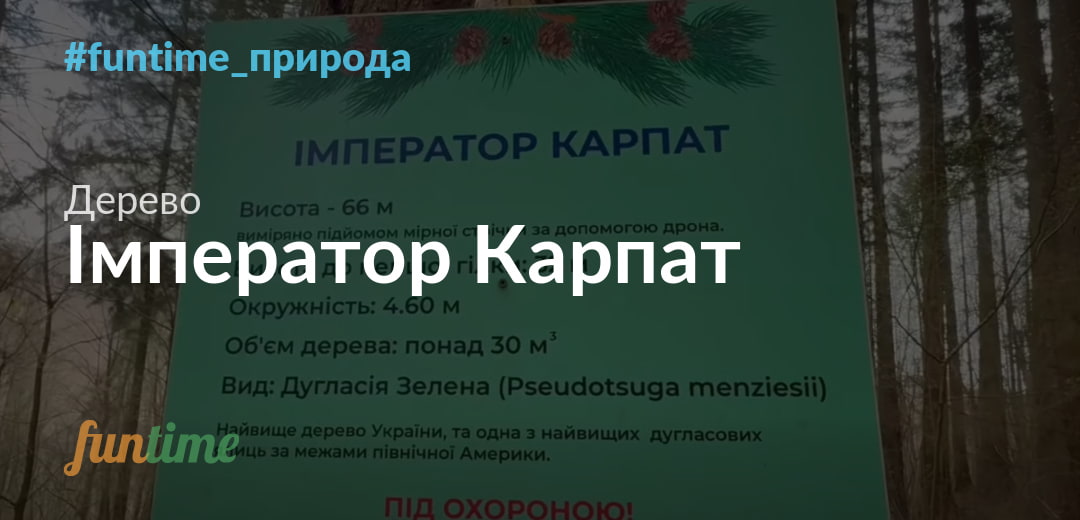 «Імператор Карпат» — це унікальне дерево-рекордсмен, яке вражає своїми масштабами та величчю. Ця дугласія зелена (псевдотсуга Мензіса) вважається найвищим деревом України та одним із найвищих представників своєї породи у Європі. Висота гіганта сягає 66 метрів, що робить його справжнім природним символом сили й витривалості карпатських лісів.