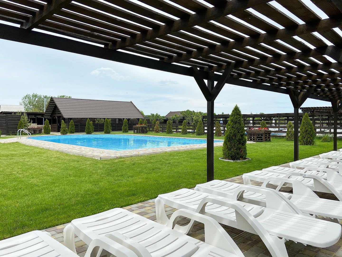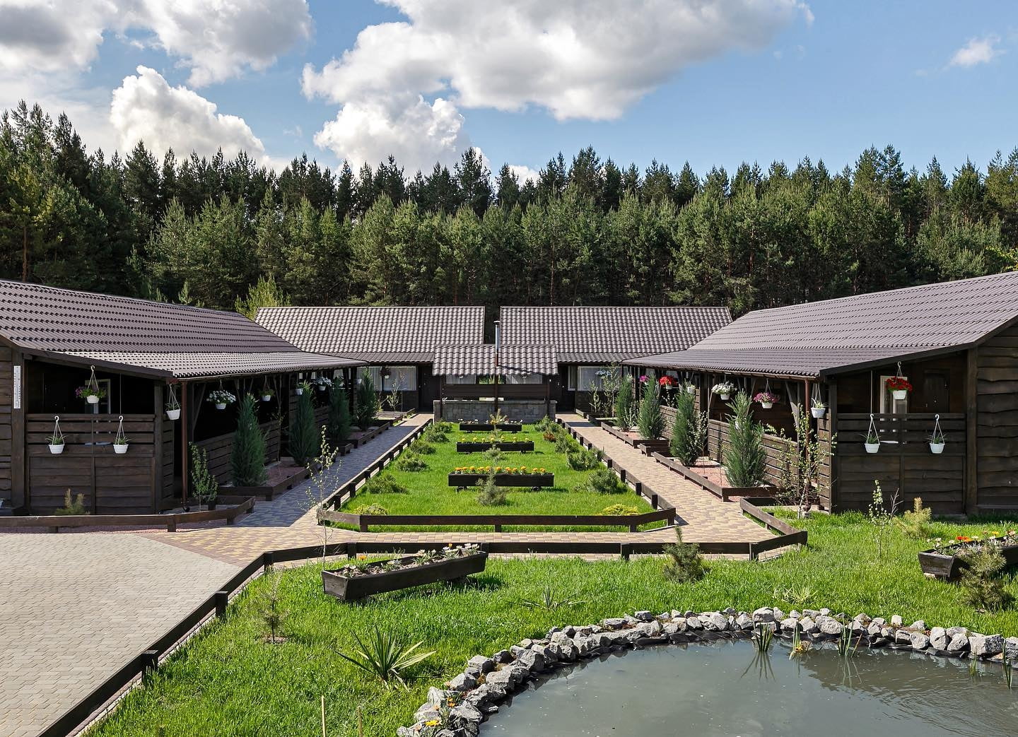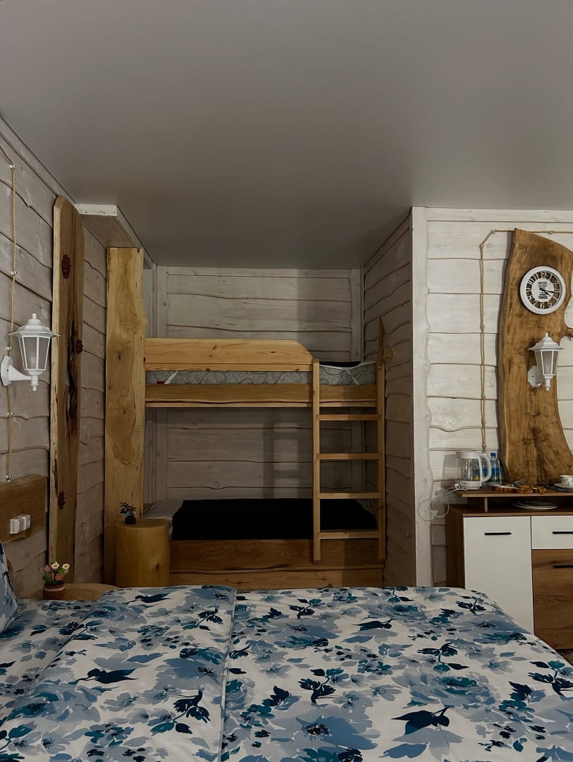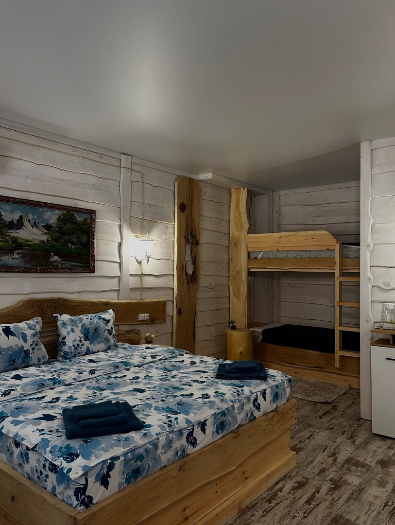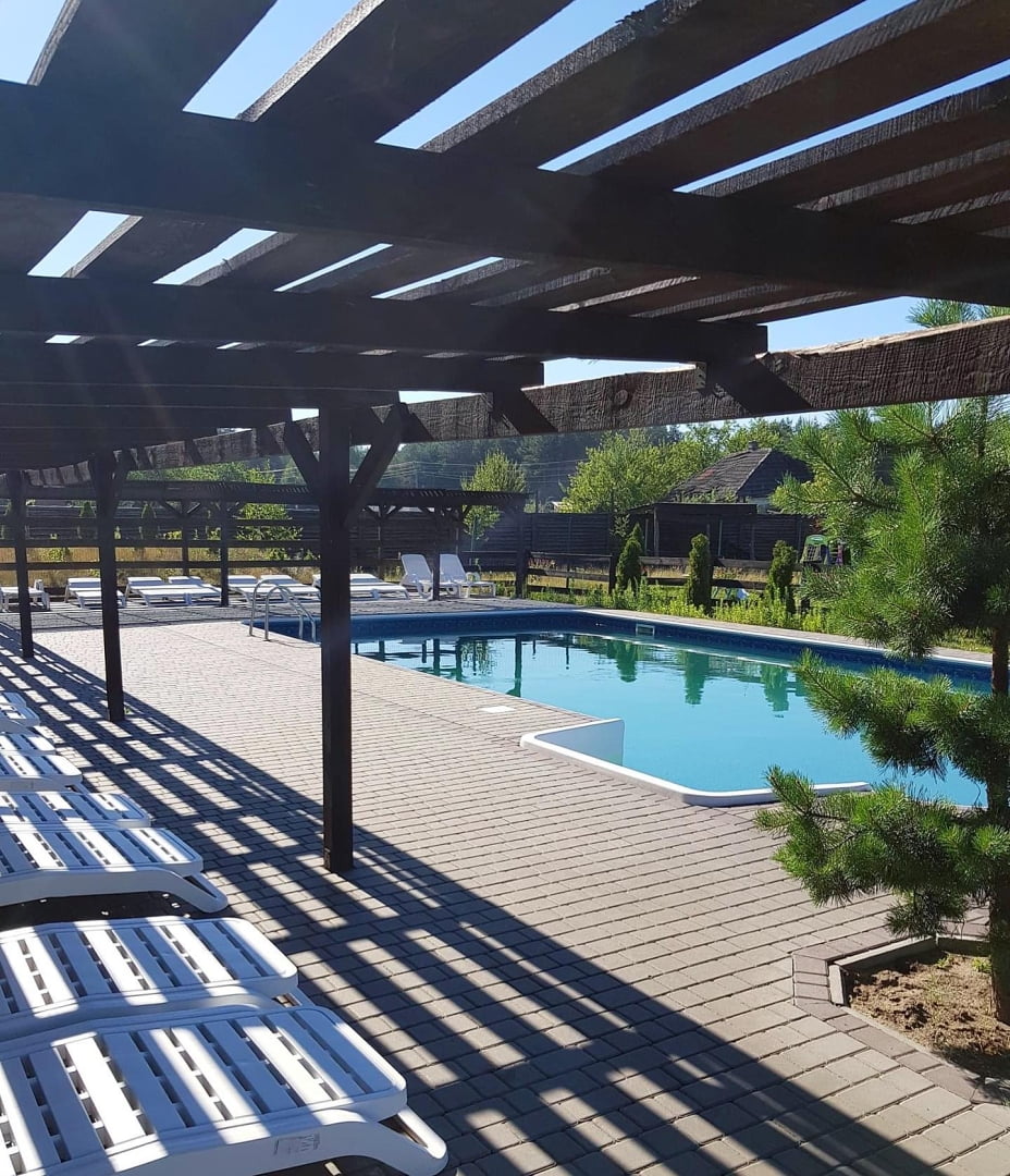 Комплекс пропонує кілька варіантів розміщення. На одній території розташований готель з однокімнатними та двокімнатними номерами, кожен з яких має власну терасу. Окремо функціонує новий корпус із преміум-номерами та котеджами з видом на сосновий ліс. Таке планування дозволяє обрати формат проживання як для короткого візиту, так і для кількаденного відпочинку з більшим рівнем приватності.