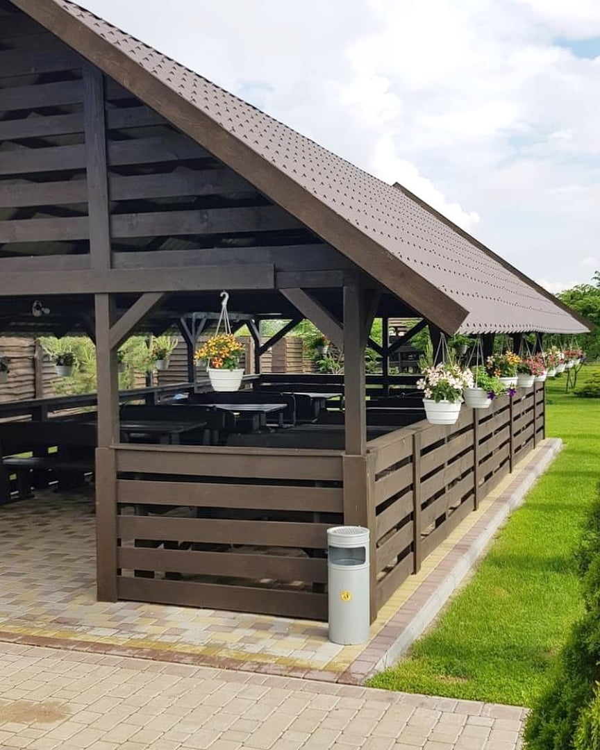 На території комплексу працює кафе-бар, де готують страви домашньої кухні, а також подають напої та страви з мангалу. Для гостей, які проживають у номерах або котеджах, передбачена можливість самостійного приготування їжі в спеціально облаштованій гриль-зоні. Альтанки часто використовують для дружніх зустрічей та невеликих святкувань у неформальній атмосфері.