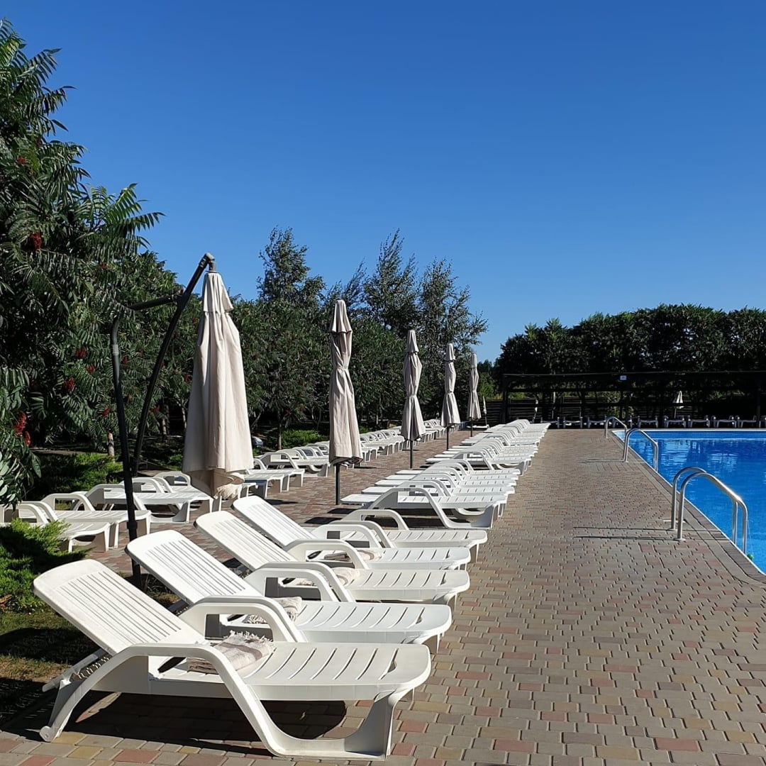 «Аквамарин» орієнтований на поєднання пасивного й помірно активного відпочинку. На окремій території комплексу облаштовано три відкриті басейни: великий багаторівневий, басейн з морською водою та окремий дитячий басейн з безпечною глибиною. Поруч розміщені шезлонги з навісами, що забезпечують комфортне перебування біля води протягом дня.