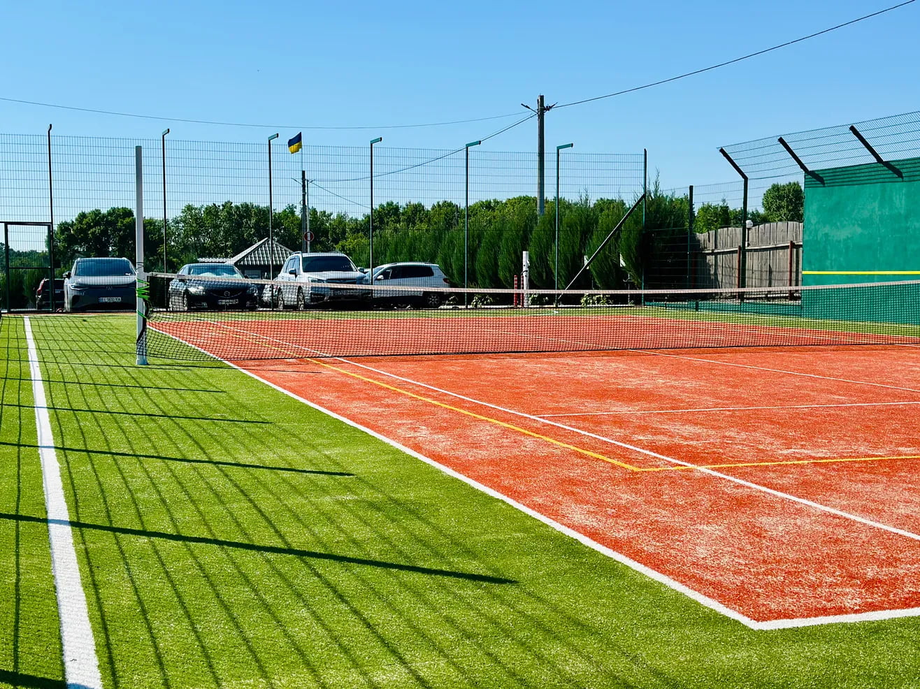 | Спорт і розваги | тенісні корти, футбольне поле, прогулянка на квадроциклах, човнах, катамаранах та SUP-дошках, кінний комплекс |