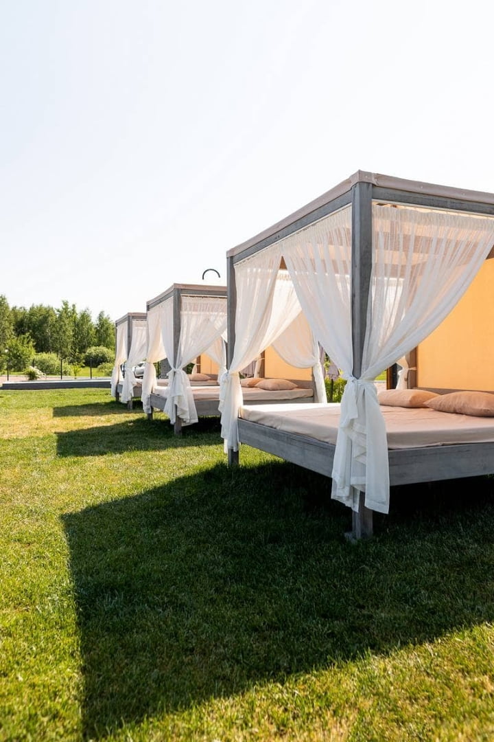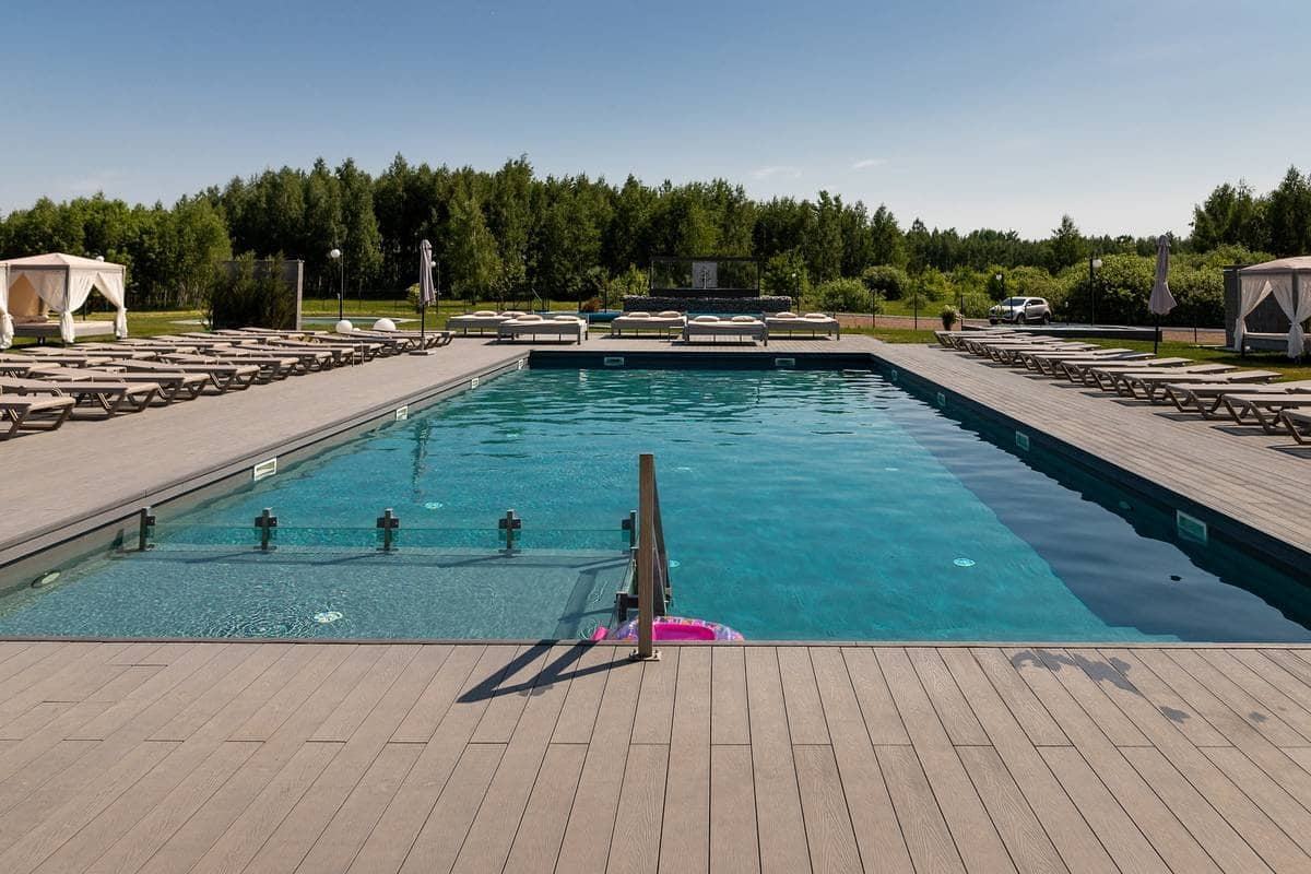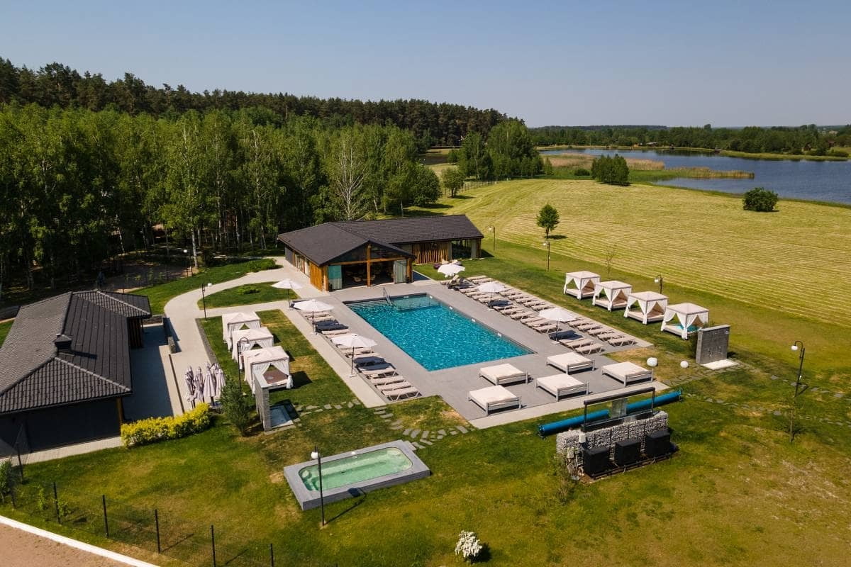 | Вартість відпочинку | (ціни на найпопулярніші категорії послуг в 2025 році) Вхідний квиток до басейну: будні — 350 грн, вихідні — 450 грн; шезлонги — від 700 грн; проживання — від 3500 грн/ніч |