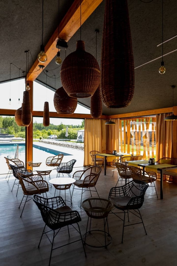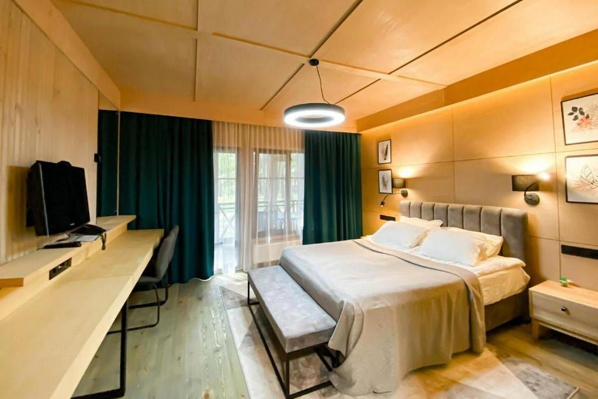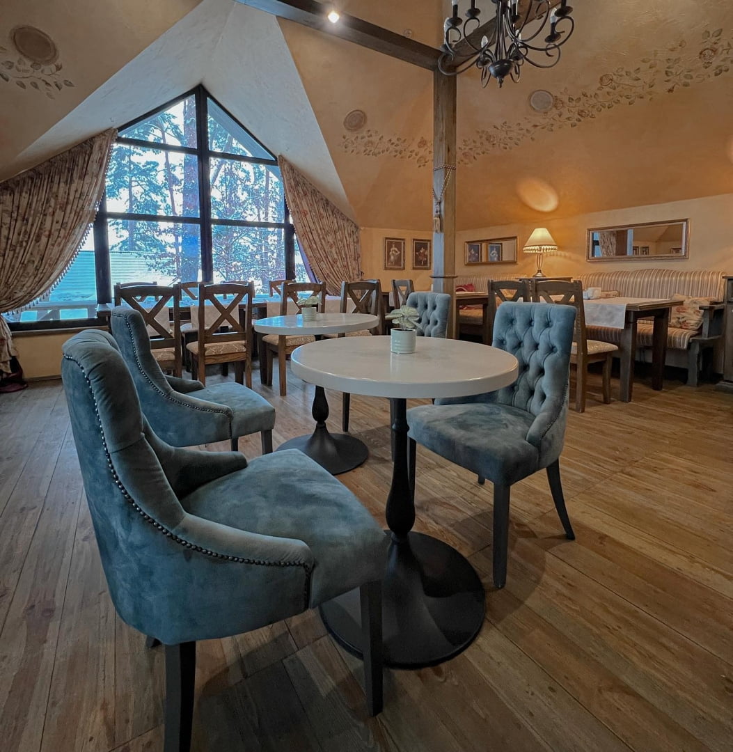 | Проживання | 28 номерів, 15 котеджів різного типу, будиночки, будинок біля озера |