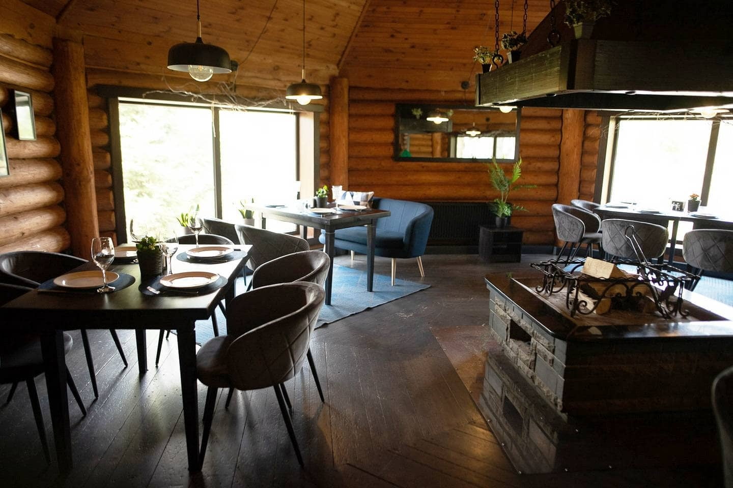 На території комплексу працює ресторан європейської кухні з поліськими акцентами, де готують зі свіжих місцевих продуктів. Гості можуть насолоджуватися стравами у кількох локаціях — панорамному ресторані, класичній залі на «висоті» або в колибах біля озера. Є можливість проведення банкетів, весіль, корпоративів і приватних свят із живою музикою та професійним сервісом. Також можна замовити доставку страв у номер.