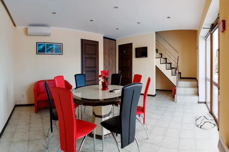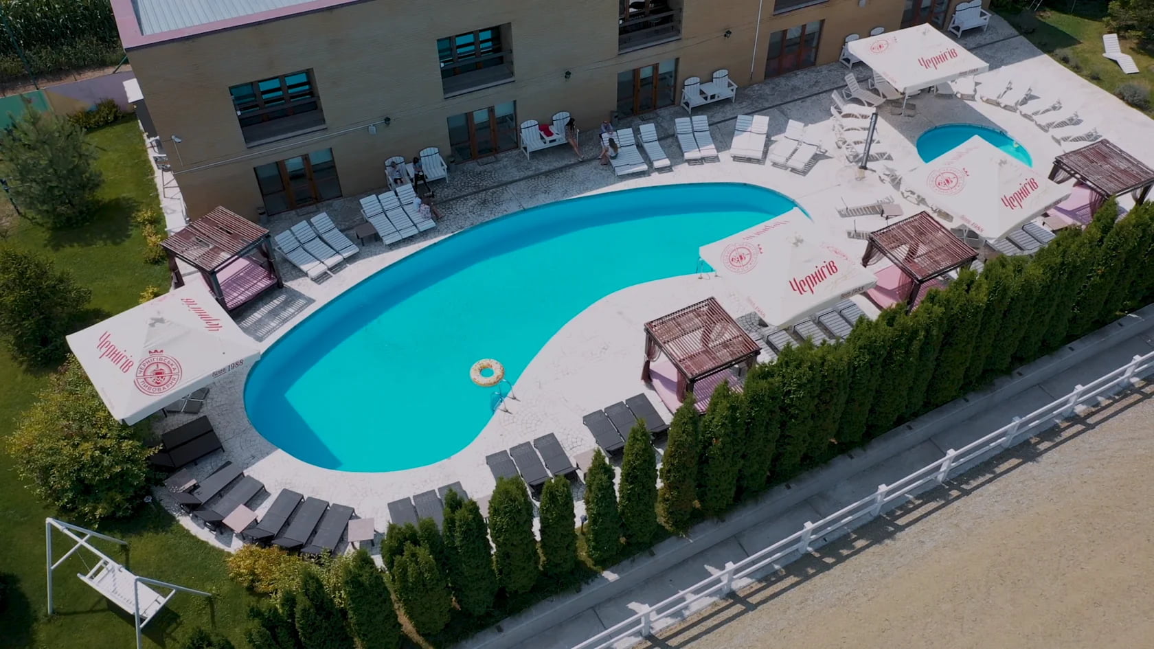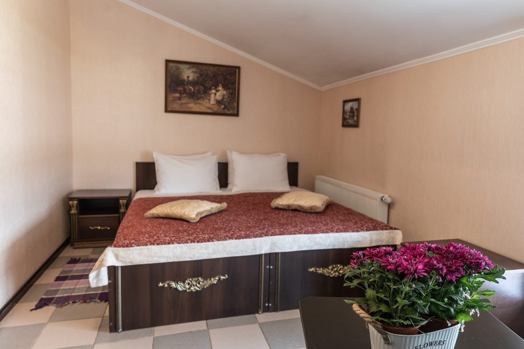 Комплекс пропонує комфортне розміщення у двох готелях з номерами різних категорій — від стандартних двомісних до просторих люксів із власним входом. Для компаній доступні дуплекси з сауною, а для сімейного відпочинку — затишні номери з балконом і видом на басейн. На території діє банний комплекс, безкоштовна парковка, дитячий табір і догляд за тваринами.