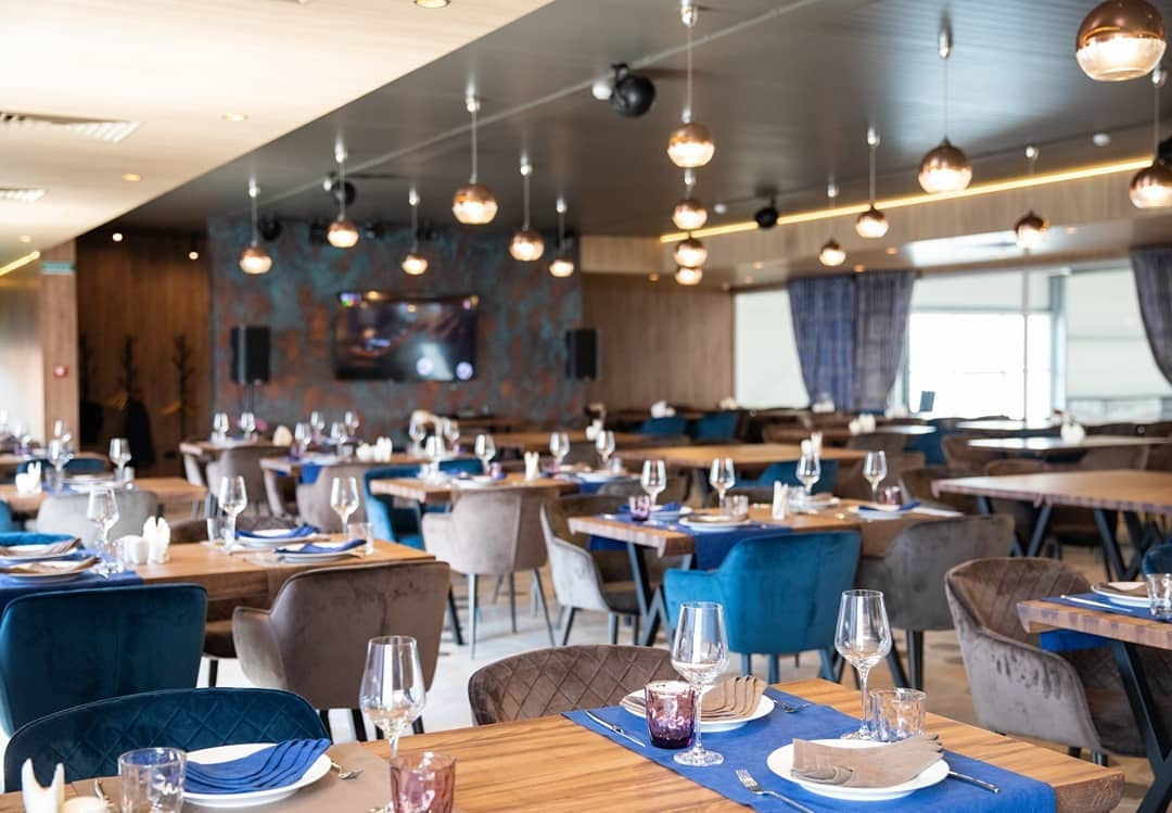 Ресторан DERGACHOV дотримується філософії здорового харчування: усі страви готуються з натуральних продуктів власного господарства — овочів, фруктів, м’яса, сиру та птиці без хімічних добавок. Меню поєднує традиційну європейську та українську кухні: стейки, рибу на грилі, салати та домашні десерти. Основний зал розрахований на 160 гостей і має літню терасу з видом на кінні арени. Також у ресторані організовують банкети, весілля, корпоративи та конференції.