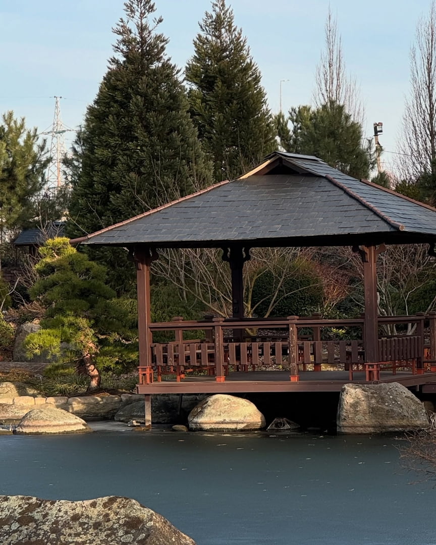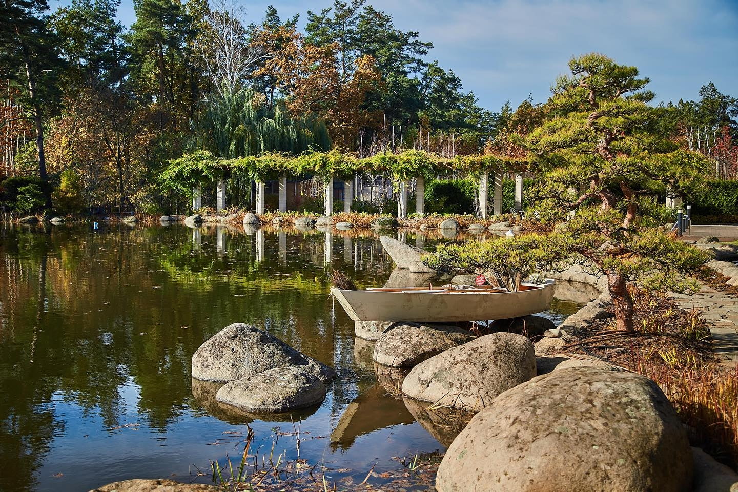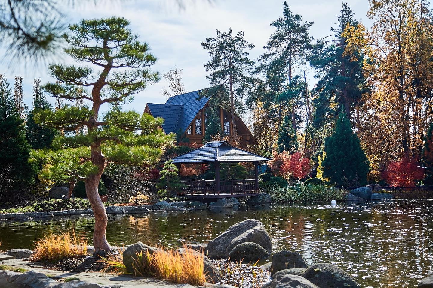 Серцем парку є японський сад, створений за класичними канонами: тут ростуть сторічні нівакі, привезені з Японії, а кожен камінь, місток і водойма мають свою філософію. Символічний міст «7 кроків Будди», павільйон для медитацій, суха водойма, каскади водоспадів, альтанка на воді — усе продумано до найменших деталей, аби передати гармонію між природою і людиною.