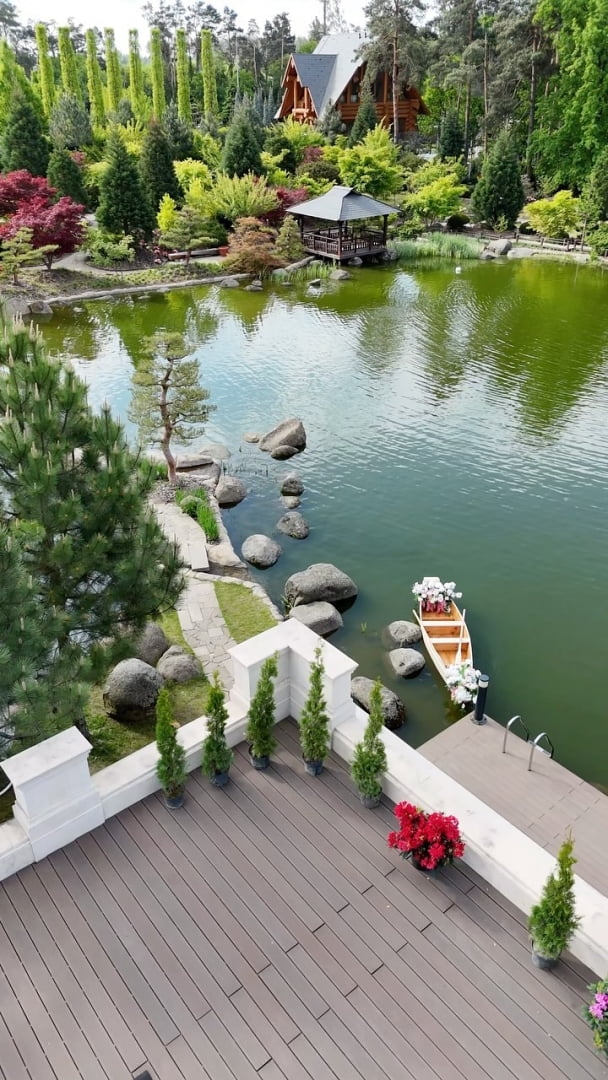 Усього за 10–12 кілометрів від Києва, у селі Віта-Поштова, розташувався дивовижний острів спокою — Eva Park. Це ландшафтний парк, де природа і мистецтво ландшафтного дизайну зливаються в єдиний живий простір. Тут відвідувачі відкривають для себе гармонію японського саду, витонченість англійського стилю, романтику французької перголи та дзеркальну красу озера з водоспадами.