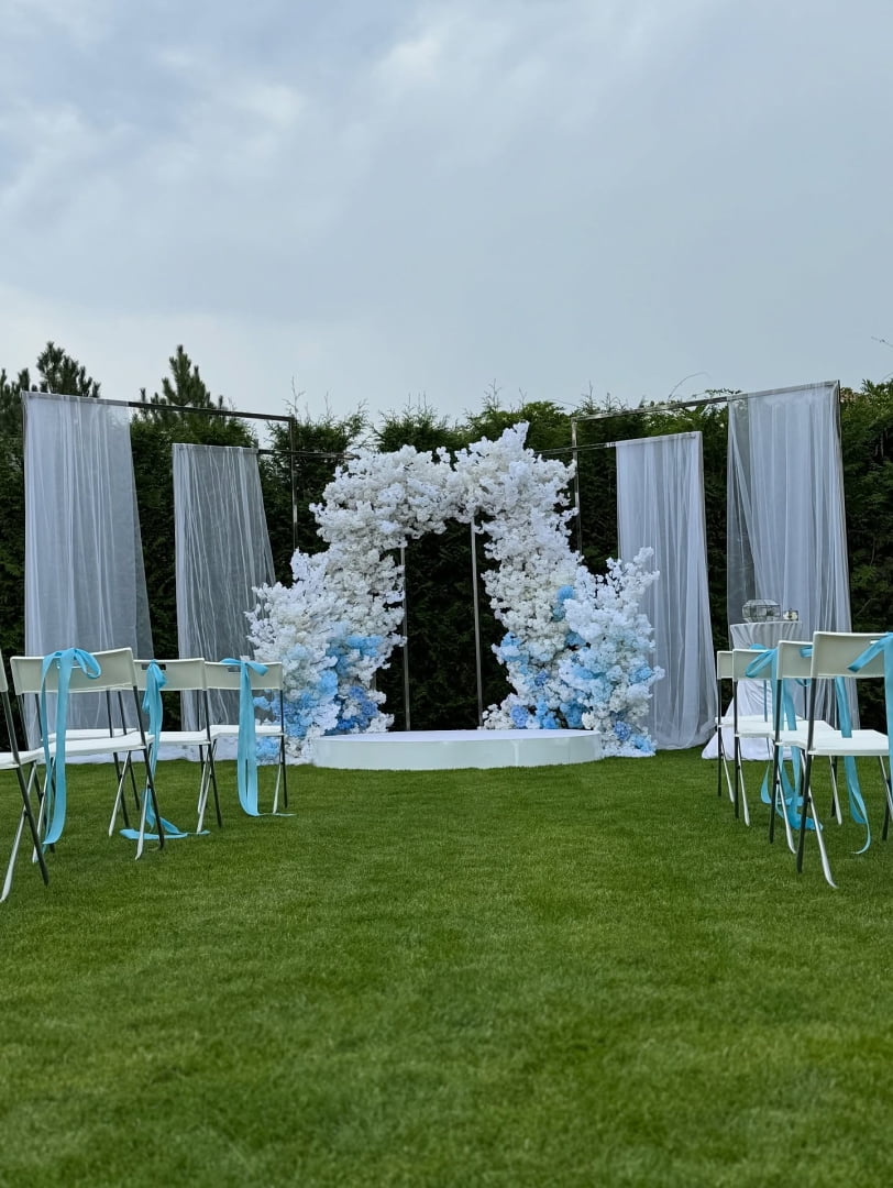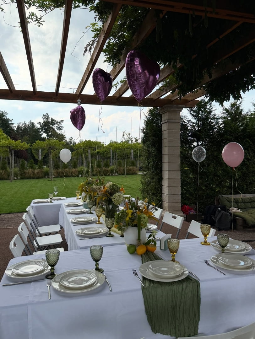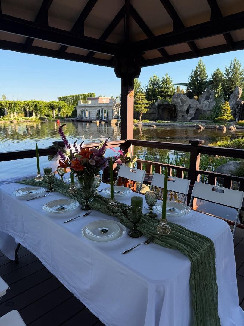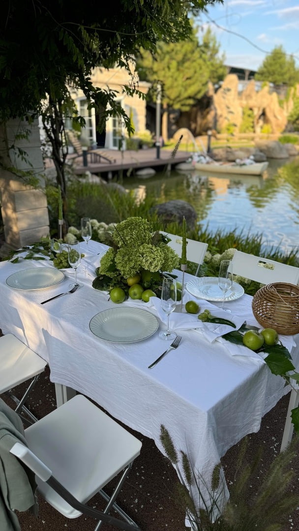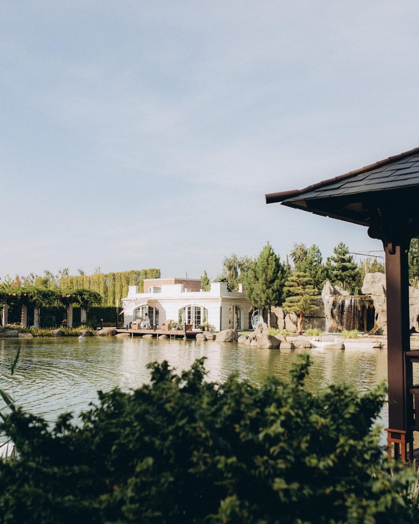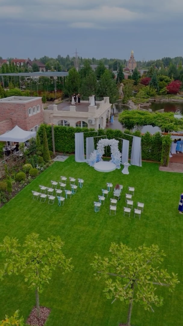 Поруч — англійська галявина, французька пергола та озеро з альтанкою, що створюють ідеальне тло для фотосесій, прогулянок чи святкувань.