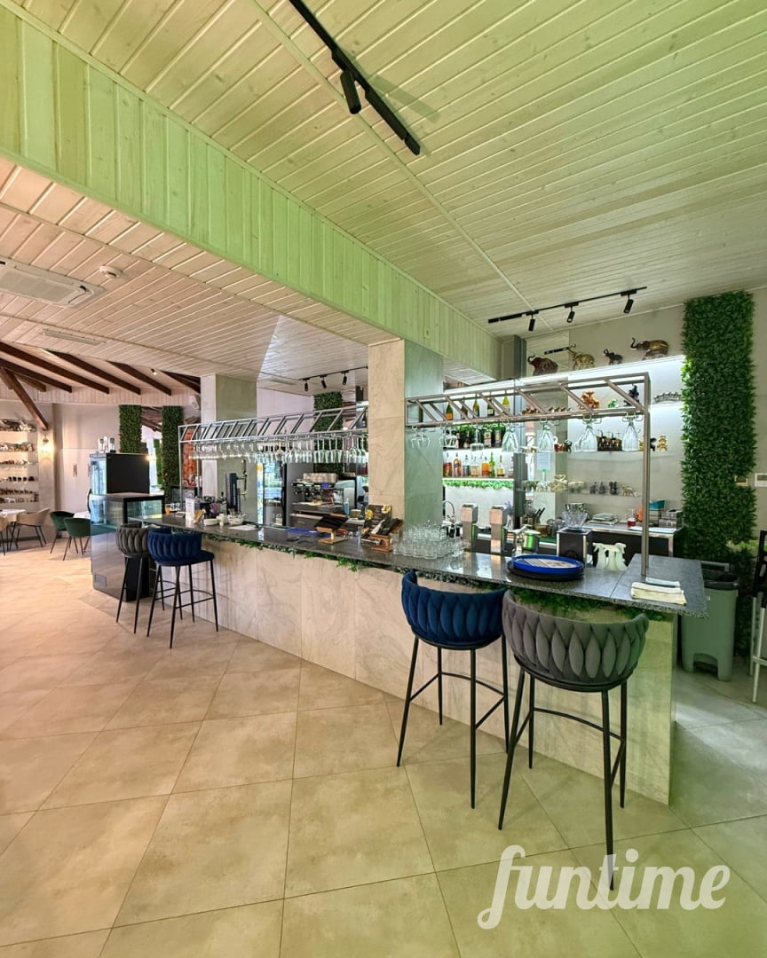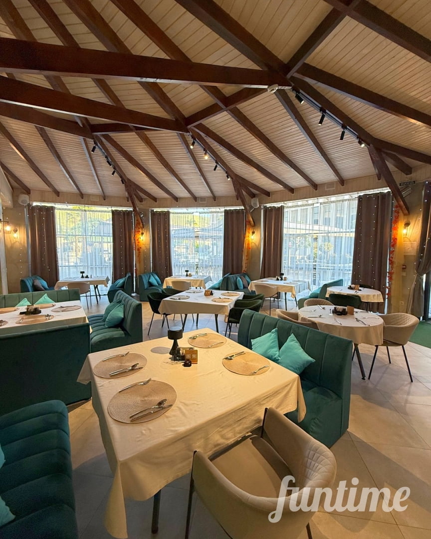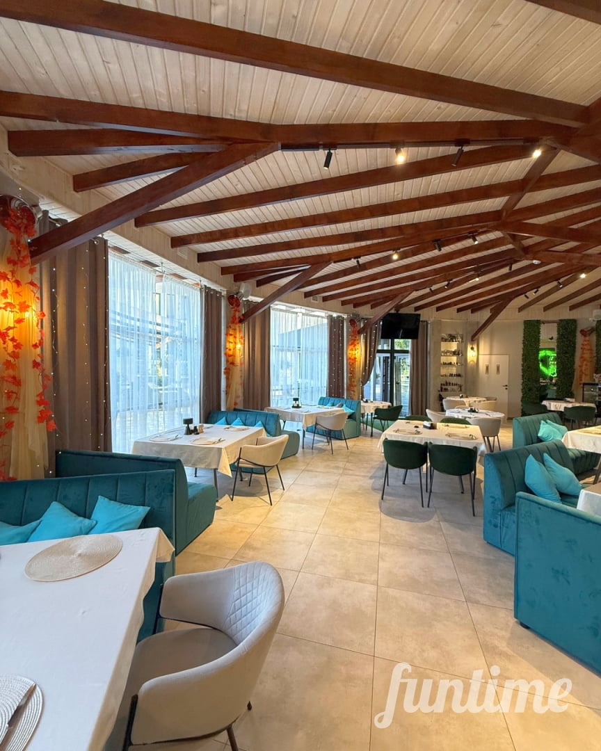 Ресторан курортного комплексу пропонує різноманітне меню, яке включає страви середземноморської, італійської, азіатської, української та угорської кухонь. Крім того, на території є піцерія, мангал, бари та заклади швидкого харчування. Гастрономічний досвід гостей урізноманітнюють спеціальні тематичні вечори та дитяче меню.