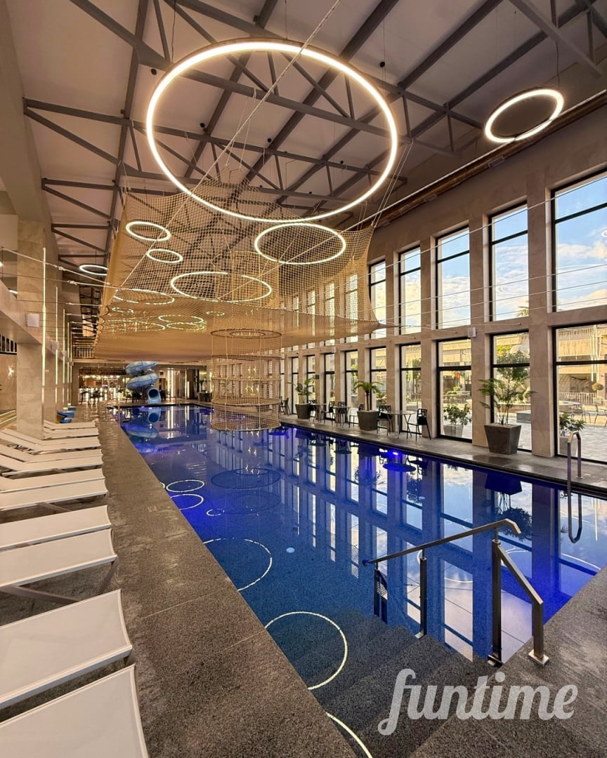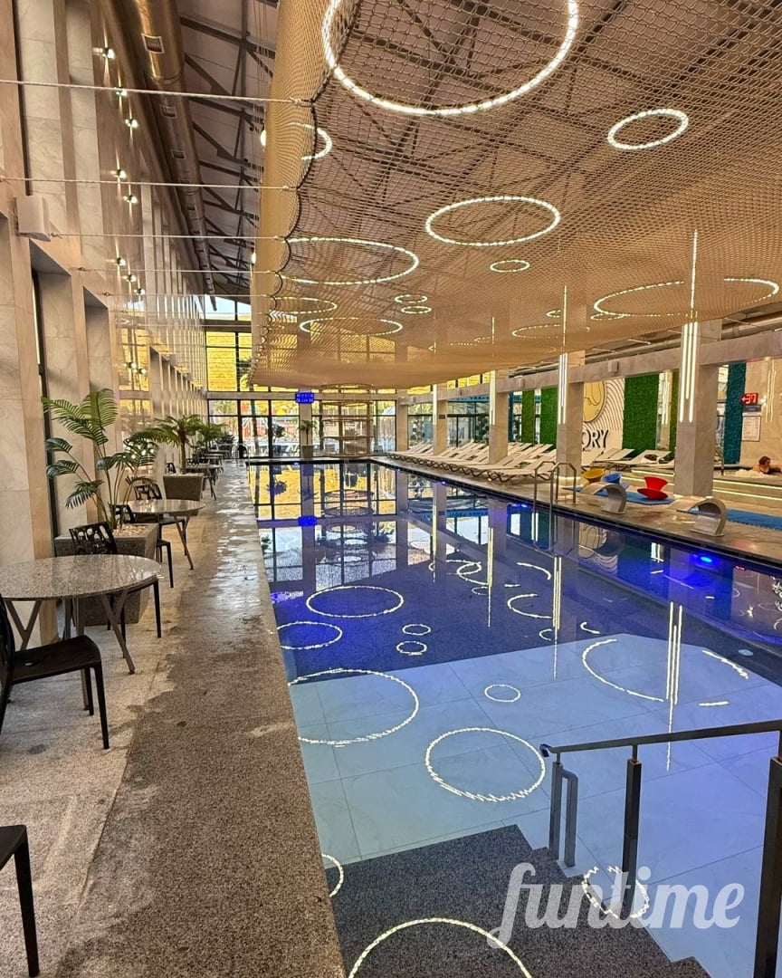 До послуг гостей надається п’ять басейнів, серед яких є відкриті з підігрівом та солоною водою, критий басейн, а також басейн з водоспадами та гідромасажем. У SPA-зоні комплексу можна відвідати фінську та арома-сауни, хамам, соляну кімнату та джакузі з термальною водою. Для прихильників активного відпочинку обладнано тренажерний зал, мотузкову арену та водний парк. Також проводяться вечірні розважальні програми. Для наймолодших гостей працює дитячий клуб, є дитячі гірки, батут, ігрові апарати, дитяча кімната та спортивний майданчик.