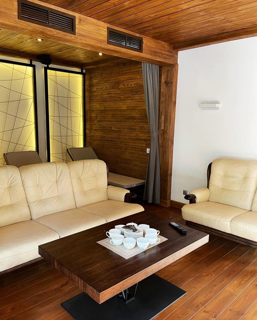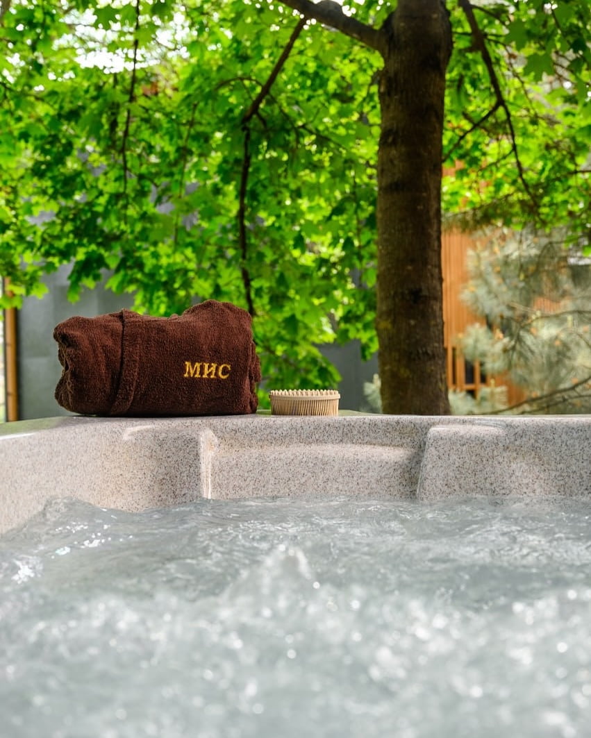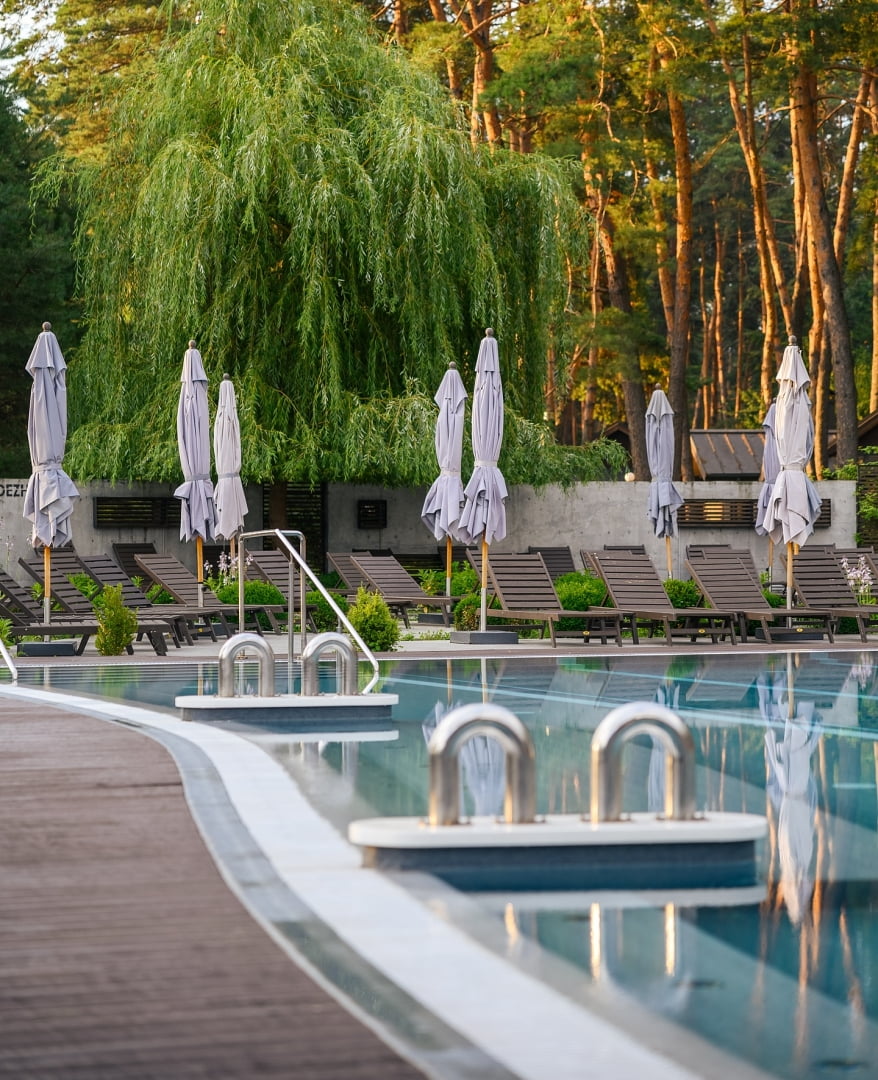 | Вартість відпочинку | (ціни на найпопулярніші категорії послуг в 2026 році) Стандарт — 5000–5500 грн/доба, Стандарт+ — 5500–6100 грн/доба, Делюкс — 5900–6300 грн/доба, Люкс-студіо — 6800–7400 грн/доба, Люкс — 12000–14000 грн/доба, басейн — 1000–1200 грн, басейн + обід — 1500–1800 грн, SPA — від 1500 грн, оренда SPA-блоку — 6000 грн/3 год, альтанки — 750–3000 грн, пляж — 200–250 грн, SUP — 100 грн/30 хв, велосипед — 200 грн/год. |