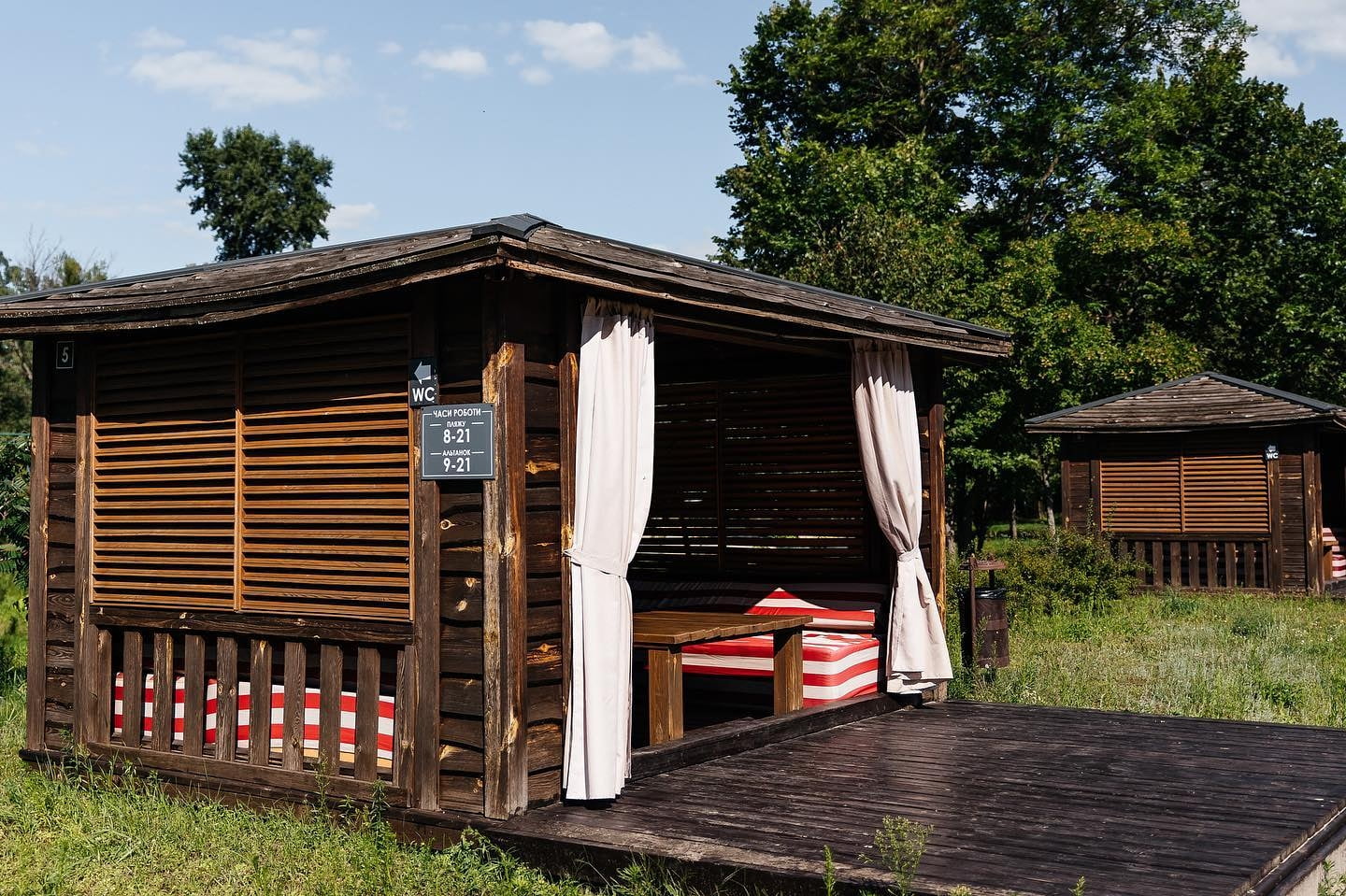 Для компаній передбачені альтанки різних форматів, зокрема на воді та з можливістю грилю.