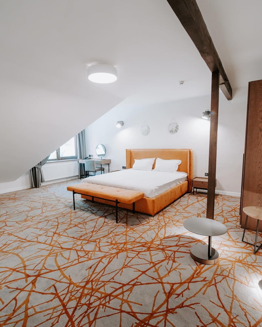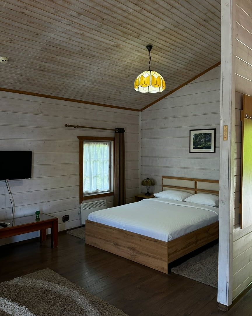 Готельна частина комплексу налічує 26 номерів різних категорій – від стандартів до люксів. Кожен номер вирізняється комфортом, світлим інтер’єром та необхідними зручностями. Для тих, хто цінує усамітнення, пропонуються бунгало з видом на парк чи на воду, а також унікальні варіанти проживання – бунгало «На причалі» або «Дача». Великі компанії можуть зупинитися у сімейній віллі, розрахованій на десять гостей. Усі варіанти поєднують домашній затишок із сучасними стандартами готельного сервісу.