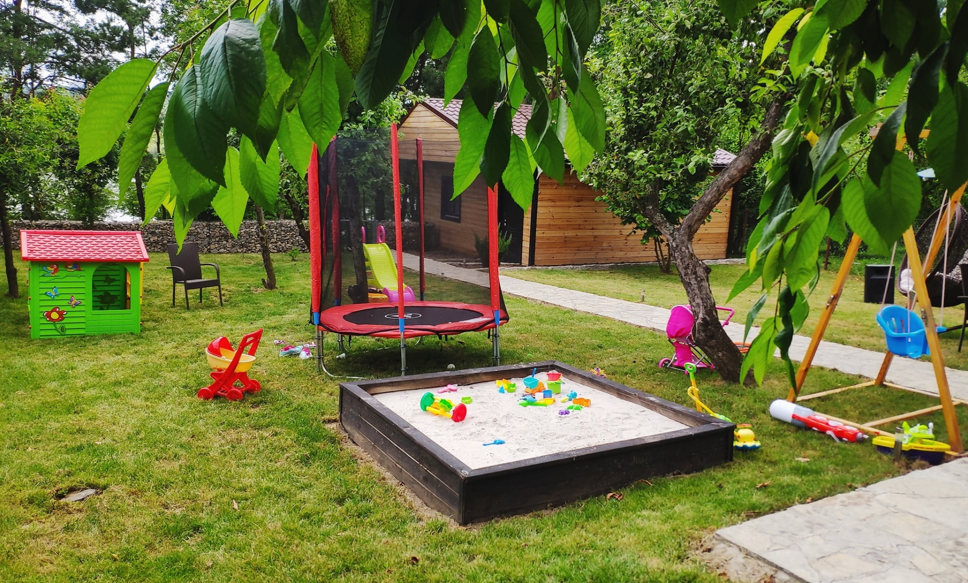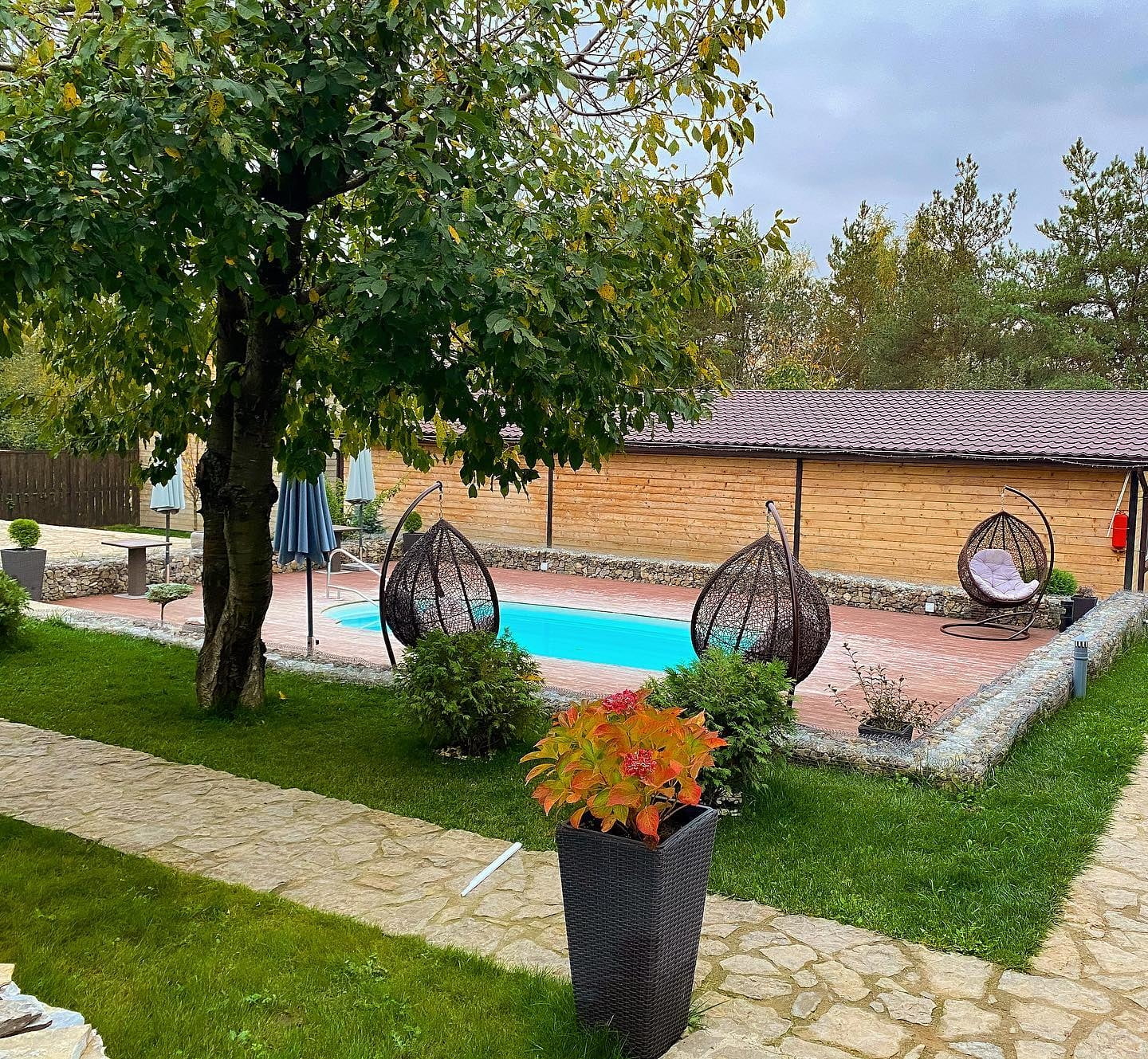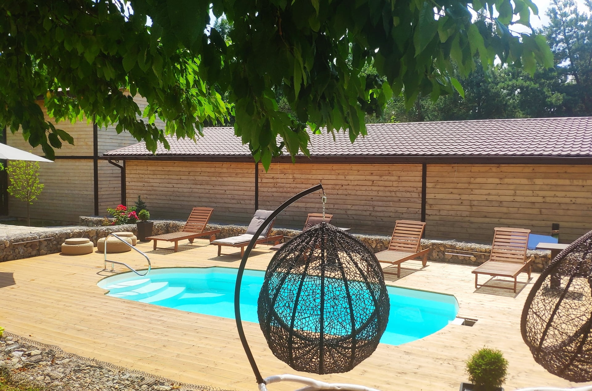 Комплекс орієнтований як на спокійний, так і на активний відпочинок. Для релаксу доступний відкритий басейн із лежаками та парасолями, а також затишні альтанки на березі річки з мангалами. Особливу атмосферу створюють вечори на природі та великі садові гойдалки, з яких можна милуватися зоряним небом.