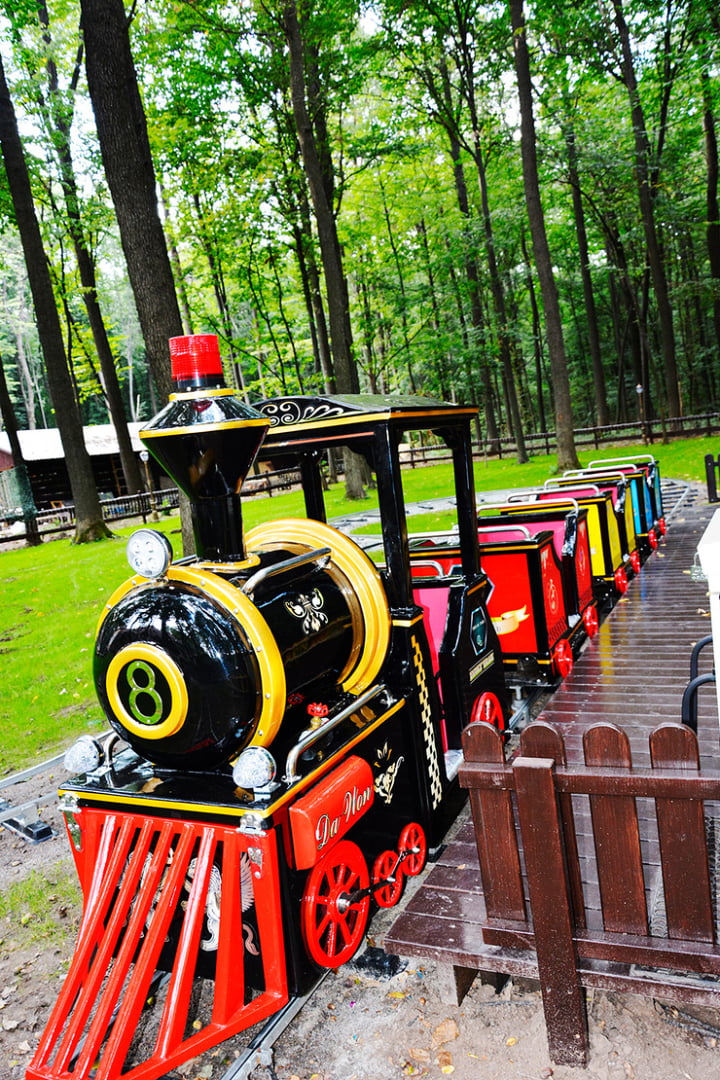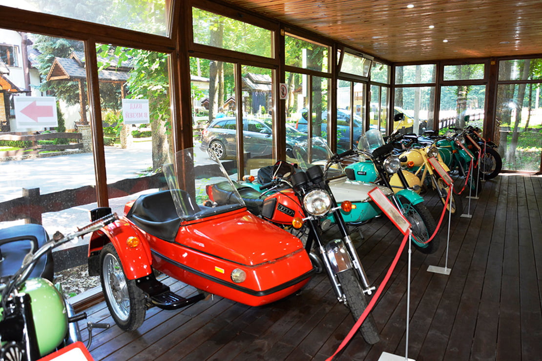 Особливе місце займає Казковий ліс, де можна зустріти декоративних оленів і лосів, знайти стежки до Баби Яги чи лісовика, а ввечері — пройтися алеєю ліхтарів до чарівного фонтану. Для поціновувачів технічної естетики створено музей мотоциклів, що занурює в атмосферу ретро та дозволяє доторкнутися до історії легендарних байків.